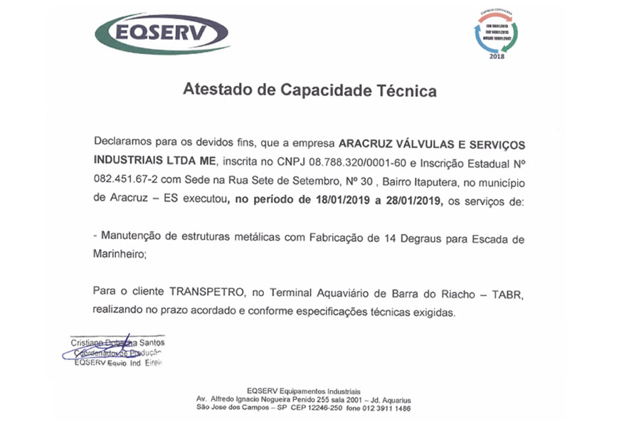CERTIFICAÇÕES / CAPACIDADE TÉCNICA